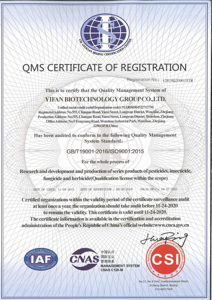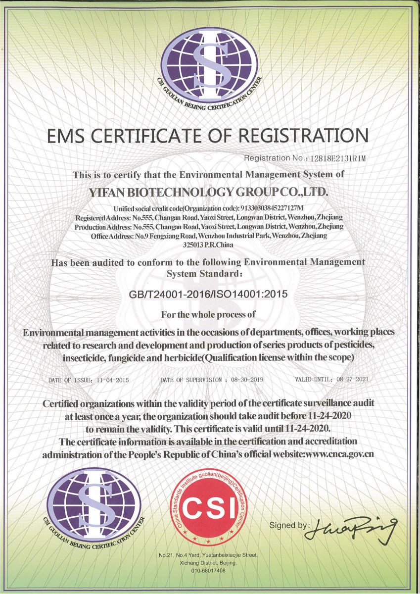 YIFAN BIOTECHNOLOGY GROUP CO., LTD. always adheres to the concept of "safe production, green development" and takes various measures to promote the safety and environmental protection construction of the enterprise. We had further improved the safety and environmental protection system, implement the "high standards, strict requirements" guidelines, and strive to achieve sophisticated, scientific and information management. At the same time, as a technology-intensive enterprise, YIFAN continued to optimize the industrial structure and strengthen technological innovation and process optimization. We pay attention to green prevention and control technology in the whole process of crop growth, and actively develop and produce green pesticides with high efficiency, low toxicity and low residue.