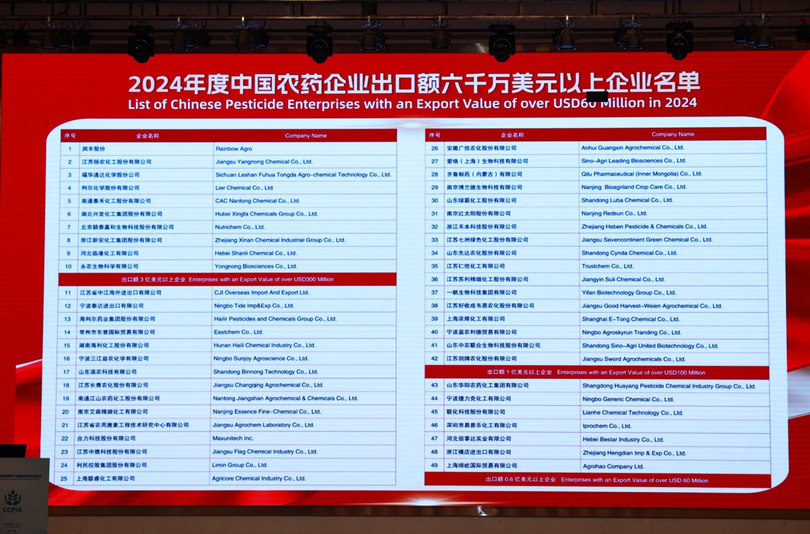 喜报!一帆集团荣登2024年度中国农药企业出口额企业名单第37名! |